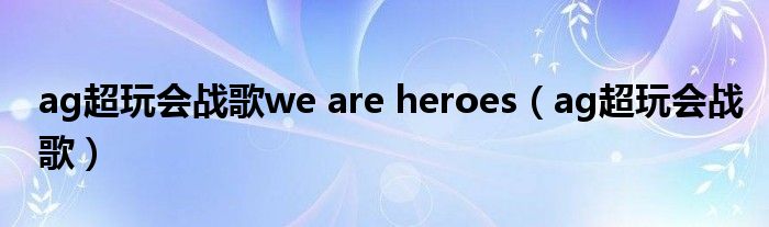 大家好,小华来为大家解答以上的问题。ag超玩会战歌we are heroes,ag超玩会战歌这个很多人还不知道,现在让我们一起来看看吧!