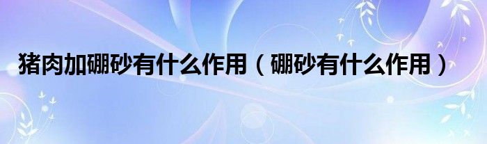 大家好,乐天来为大家解答以下的问题,猪肉加硼砂有什么作用,硼砂有什么作用很多人还不知道,现在让我们一起来看看吧!
