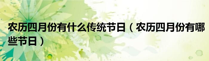 农历四月份有什么传统节日(农历四月份有哪些节日)