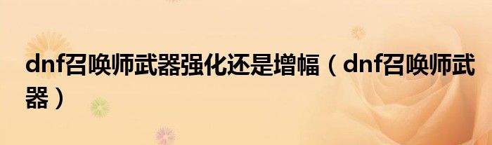 大家好,来宝来为大家解答以下问题,dnf召唤师武器强化还是增幅,dnf召唤师武器很多人还不知道,今天让我们一起来看看吧!