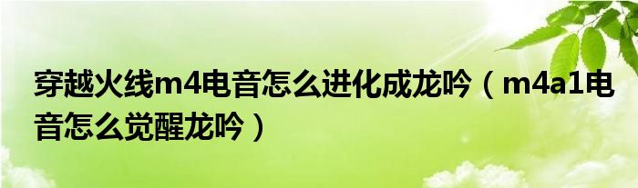 大家好,小晋来为大家解答以下问题,关于穿越火线m4电音怎么进化成龙吟,m4a1电音怎么觉醒龙吟很多人还不知道,今天让我们一起来看看吧!
