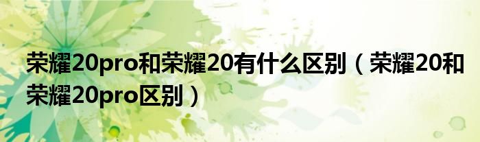 大家好,小晋来为大家解答以下问题,关于荣耀20pro和荣耀20有什么区别,荣耀20和荣耀20pro区别很多人还不知道,今天让我们一起来看看吧!