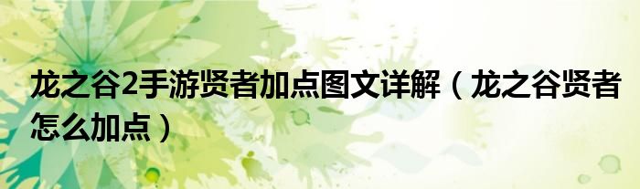 大家好,来宝来为大家解答以下问题,龙之谷2手游贤者加点图文详解,龙之谷贤者怎么加点很多人还不知道,今天让我们一起来看看吧!