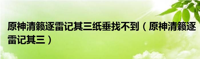 大家好,来宝来为大家解答以下问题,原神清籁逐雷记其三纸垂找不到,原神清籁逐雷记其三很多人还不知道,今天让我们一起来看看吧!