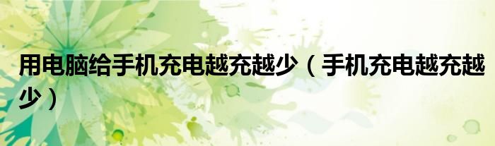 大家好,小晋来为大家解答以下问题,关于用电脑给手机充电越充越少,手机充电越充越少很多人还不知道,今天让我们一起来看看吧!