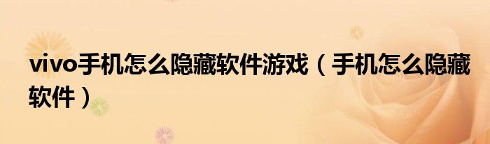 vivo手机怎么隐藏软件游戏(手机怎么隐藏软件)
