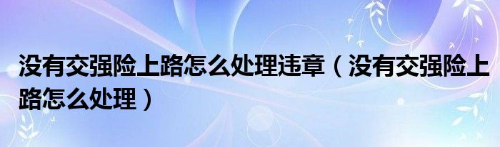 大家好,小晋来为大家解答以下问题,关于没有交强险上路怎么处理违章,没有交强险上路怎么处理很多人还不知道,今天让我们一起来看看吧!