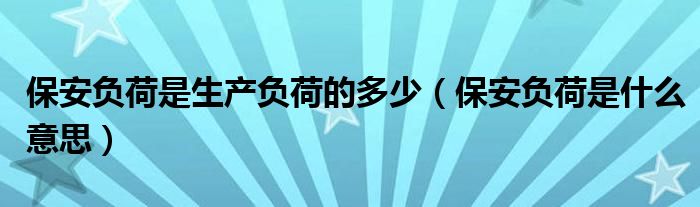 关于保安负荷是生产负荷的多少,保安负荷是什么意思这个很多人还不知道,今天菲菲来为大家解答以上的问题,现在让我们一起来看看吧!