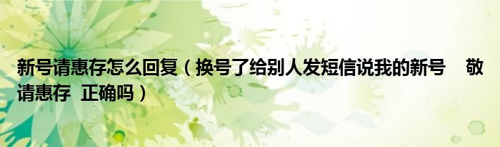关于新号请惠存怎么回复,换号了给别人发短信说我的新号 敬请惠存 正确吗这个很多人还不知道,今天菲菲来为大家解答以上的问题,现在让我们一起来看看吧!