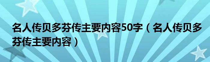 名人传贝多芬传主要内容50字(名人传贝多芬传主要内容)