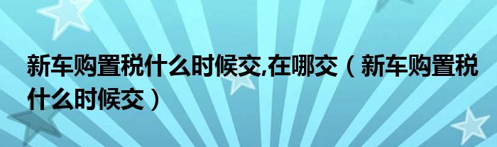 大家好,小晋来为大家解答以下问题,关于新车购置税什么时候交,在哪交,新车购置税什么时候交很多人还不知道,今天让我们一起来看看吧!