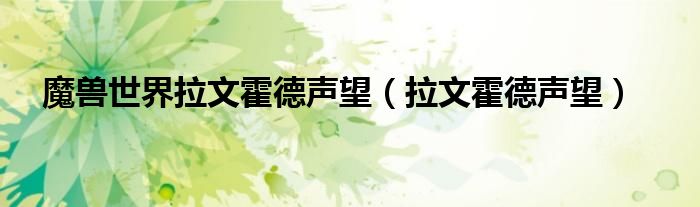 关于魔兽世界拉文霍德声望,拉文霍德声望这个很多人还不知道,今天菲菲来为大家解答以上的问题,现在让我们一起来看看吧!