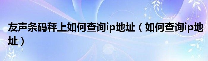 大家好,来宝来为大家解答以下问题,友声条码秤上如何查询ip地址,如何查询ip地址很多人还不知道,今天让我们一起来看看吧!
