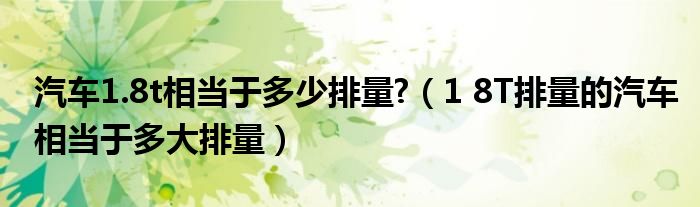 关于汽车1.8t相当于多少排量?,1 8T排量的汽车相当于多大排量这个很多人还不知道,今天菲菲来为大家解答以上的问题,现在让我们一起来看看吧!
