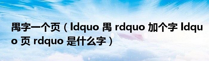 禺字一个页(ldquo 禺 rdquo 加个字 ldquo 页 rdquo 是什么字)