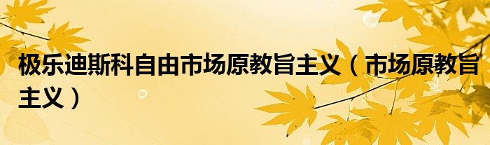 关于极乐迪斯科自由市场原教旨主义,市场原教旨主义这个很多人还不知道,今天菲菲来为大家解答以上的问题,现在让我们一起来看看吧!
