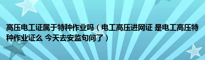 关于高压电工证属于特种作业吗,电工高压进网证 是电工高压特种作业证么 今天去安监句问了这个很多人还不知道,今天菲菲来为大家解答以上的问题,现在让我们一起来看看吧!