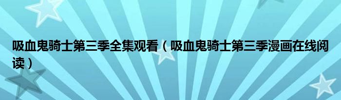 吸血鬼骑士第三季全集观看(吸血鬼骑士第三季漫画在线阅读)