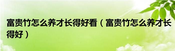 关于富贵竹怎么养才长得好看,富贵竹怎么养才长得好这个很多人还不知道,今天菲菲来为大家解答以上的问题,现在让我们一起来看看吧!