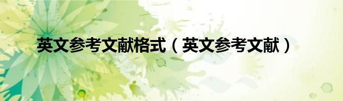 关于英文参考文献格式,英文参考文献这个很多人还不知道,今天菲菲来为大家解答以上的问题,现在让我们一起来看看吧!