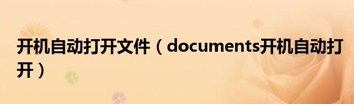 关于开机自动打开文件,documents开机自动打开这个很多人还不知道,今天菲菲来为大家解答以上的问题,现在让我们一起来看看吧!