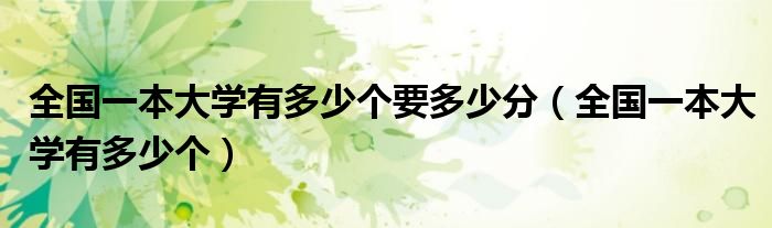 关于全国一本大学有多少个要多少分,全国一本大学有多少个这个很多人还不知道,今天菲菲来为大家解答以上的问题,现在让我们一起来看看吧!