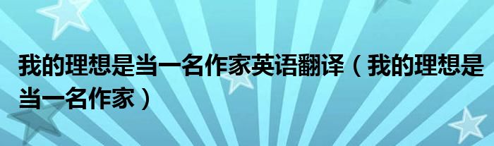 关于我的理想是当一名作家英语翻译,我的理想是当一名作家这个很多人还不知道,今天菲菲来为大家解答以上的问题,现在让我们一起来看看吧!