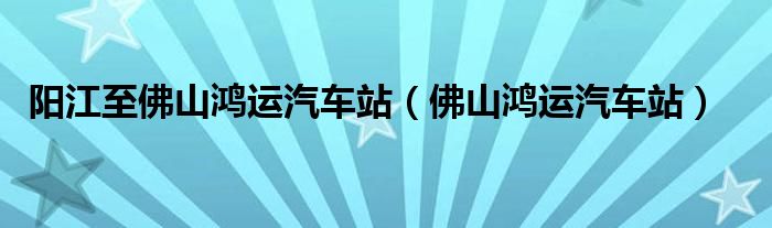关于阳江至佛山鸿运汽车站,佛山鸿运汽车站这个很多人还不知道,今天菲菲来为大家解答以上的问题,现在让我们一起来看看吧!