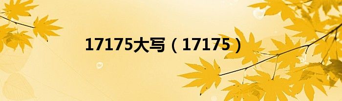 关于17175大写,17175这个很多人还不知道,今天菲菲来为大家解答以上的问题,现在让我们一起来看看吧!