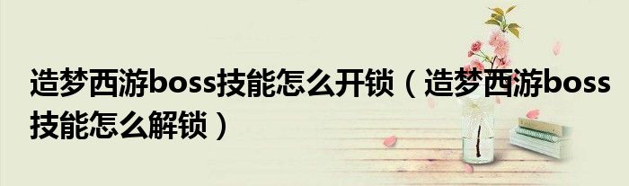 造梦西游boss技能怎么开锁(造梦西游boss技能怎么解锁)