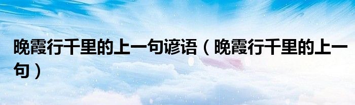 晚霞行千里的上一句谚语(晚霞行千里的上一句)
