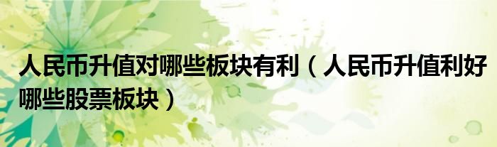 大家好,小飞来为大家解答以上的问题。人民币升值对哪些板块有利,人民币升值利好哪些股票板块这个很多人还不知道,现在让我们一起来看看吧!