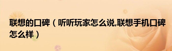 大家好,小常来为大家解答以上问题。联想的口碑,听听玩家怎么说,联想手机口碑怎么样很多人还不知道,现在让我们一起来看看吧!