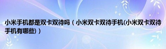 大家好,小常来为大家解答以上问题。小米手机都是双卡双待吗,小米双卡双待手机(小米双卡双待手机有哪些)很多人还不知道,现在让我们一起来看看吧!