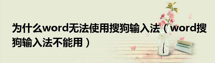 关于为什么word无法使用搜狗输入法,word搜狗输入法不能用这个很多人还不知道,今天菲菲来为大家解答以上的问题,现在让我们一起来看看吧!