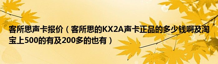 1,客所思的KX2A声卡正品的多少钱啊 淘宝上500的有 200多的也有:370包邮包调试