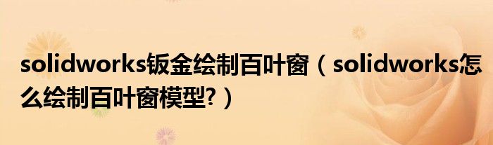 大家好,今天小悦来为大家解答以上问题。solidworks钣金绘制百叶窗,solidworks怎么绘制百叶窗模型?很多人还不知道,现在让我们一起来看看吧!