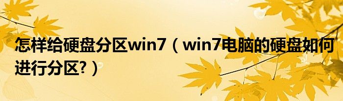 大家好,今天小悦来为大家解答以上问题。怎样给硬盘分区win7,win7电脑的硬盘如何进行分区?很多人还不知道,现在让我们一起来看看吧!