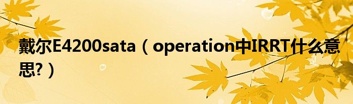 大家好,今天小悦来为大家解答以上问题。戴尔E4200sata,operation中IRRT什么意思?很多人还不知道,现在让我们一起来看看吧!