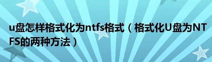 u盘怎样格式化为ntfs格式(格式化U盘为NTFS的两种方法)