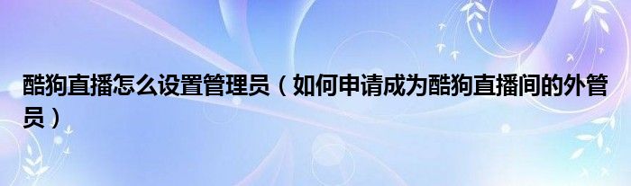大家好,今天小悦来为大家解答以上问题。酷狗直播怎么设置管理员,如何申请成为酷狗直播间的外管员很多人还不知道,现在让我们一起来看看吧!