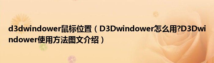 大家好,今天小悦来为大家解答以上问题。d3dwindower鼠标位置,D3Dwindower怎么用?D3Dwindower使用方法图文介绍很多人还不知道,现在让我们一起来看看吧!