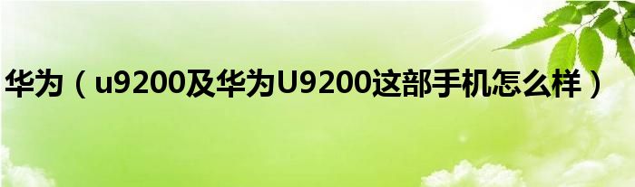 华为(u9200及华为U9200这部手机怎么样)