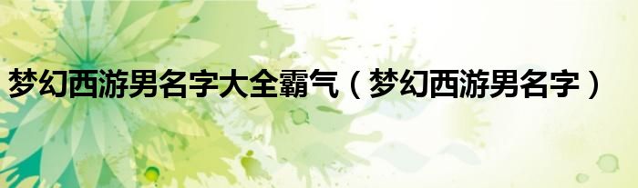 梦幻西游男名字大全霸气(梦幻西游男名字)