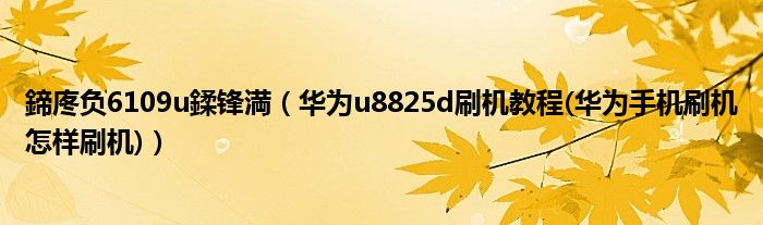 鍗庝负6109u鍒锋満(华为u8825d刷机教程(华为手机刷机怎样刷机))