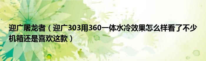 1,迎广303用360一体水冷效果怎么样看了不少机箱还是喜欢这款 :功能参数 散热性能上置:3x120mm风扇后置:1x20mm风扇下置:3x120mm风扇 看你是装顶部,还是装底部了