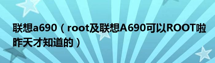 8,联想a690什么时候可以root:这个问题很简单!我也是用的A690,目前根本没有这个型号的刷机工具,如果因为机子自带的垃圾软件太多的话,可用“乐安全”强力卸载太多数,如沃3G.乐商店.等。详细操作如下:1打开“乐安全”并点击或上角有个版本升级,需手机流量下载升级。2此时你的机身自带内存需不足20%,这个你应该会吧?升级后一键体验时就会显示“清理”。3把没用的都强力卸载了吧,我连自带的浏览器都删了,再下个UC或什么的,自带的音乐也可以删,然后下个天天动听比那好多了!手工编辑,亲身体验,希望能帮到大家!