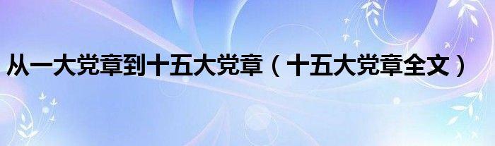 关于从一大党章到十五大党章,十五大党章全文这个很多人还不知道,今天菲菲来为大家解答以上的问题,现在让我们一起来看看吧!