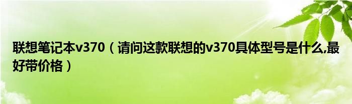 大家好,小常来为大家解答以上问题。联想笔记本v370,请问这款联想的v370具体型号是什么,最好带价格很多人还不知道,现在让我们一起来看看吧!
