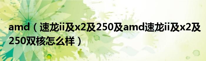 大家好,小常来为大家解答以上问题。amd,速龙ii及x2及250及amd速龙ii及x2及250双核怎么样很多人还不知道,现在让我们一起来看看吧!